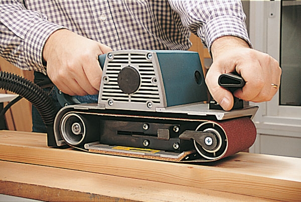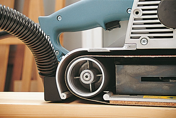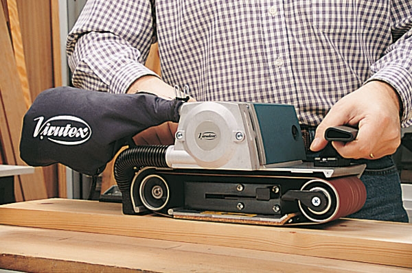 Lixadeira de grande rendimento. A grande superfície de lixagem aumenta a produtividade e permite acabamento sem sulcos. Dispõe de placas de carboneto tungsténio para evitar deterioramento da carcaça provocada pela cinta. Equipada com ligação de aspiração para maior conforto e limpeza.