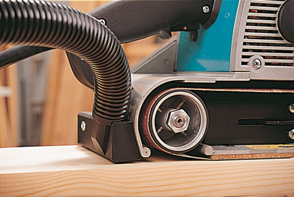 Lixadeira de grande rendimento. A grande superfície de lixagem aumenta a produtividade e permite acabamento sem sulcos. Motor trifásico, 900 W, permitindo trabalhos duros e sem manutenção. Dispõe de placas de carboneto tungsténio para evitar deterioramento da carcaça provocada pela cinta. Equipada com ligação de aspiração para maior conforto e limpeza.