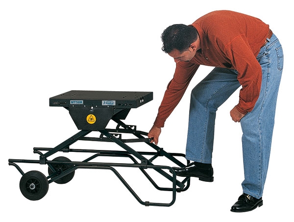 Regulável em altura, transportável e dobrável, a mesa MT58K proporciona uma sólida base de trabalho à qual podemos fixar a máquina. Tanto o transporte como a afinação podem ser realizadas com a máquina fixada pelo que se evitam contínuas montagens e desmontagens.