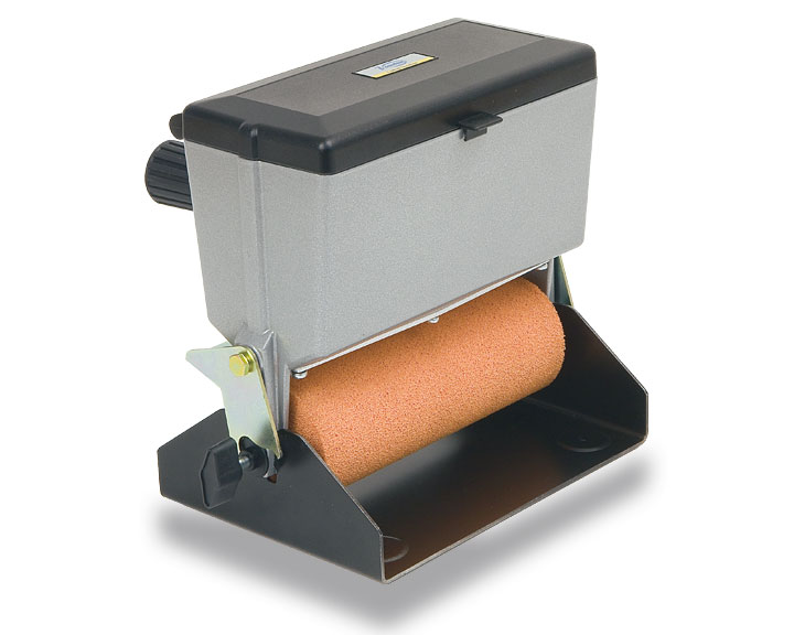 Coladora manual para colagem de grandes superfícies, com colas vinilicas (brancas). Dispositivo de fecho da dosagem da cola por gatilho. Dispõe também de suporte, quando inactiva, para maior limpeza tanto na área de trabalho como na máquina. Largura do rolo 180 mm. O modelo EM125T tem rolo superior para colagem de tiras maciças.