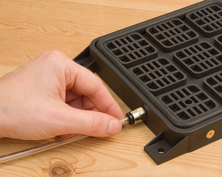 Fixação segura de peças com superfície lisa e não porosa mediante sistema pneumático de fixação por vácuo. Fixação instantânea e sem deixar marcas na superfície das peças. Possibilidade de fixação de peças grandes ou pequenas em diversas posições. A firmeza na fixação permite trabalhar com comodidade, libertando o profissional de fixações incómodas e complexas.