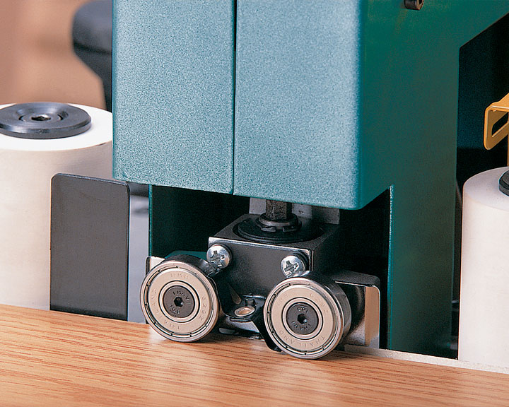 Para a aplicação de orlas pré coladas em PVC, poliester, melamina, ABS e madeira. Alimentador do painel por correia. Perfila ambas as faces com perfilador motorizado. Corte preciso no final, ajustável na parte traseira. Não necessita ar comprimido. Potente soprador de ar quente com regulação electrónica. Tempo de aquecimento (2 min). Alimentador do painel por correia. Monofásica 220-240 V. Sem necessidade de ar comprimido